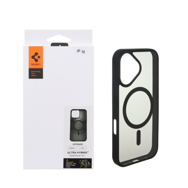 قاب اورجینال Magsafe Spigen با توری اسپیکر فلزی Apple iPhone 16 – مشکی (پک دار)