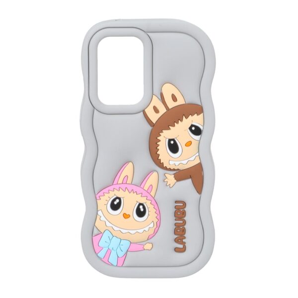 قاب سیلیکونی کنگره ای Labubu برجسته فانتزی Samsung Galaxy A52 / A52s – طوسی