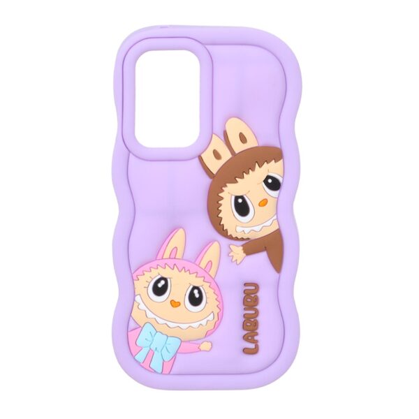 قاب سیلیکونی کنگره ای Labubu برجسته فانتزی Samsung Galaxy A52 / A52s – بنفش روشن