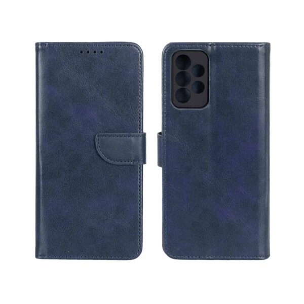 کیف چرمی موبایل مگنتی محافظ لنزدار Samsung Galaxy A72 – سرمه ای