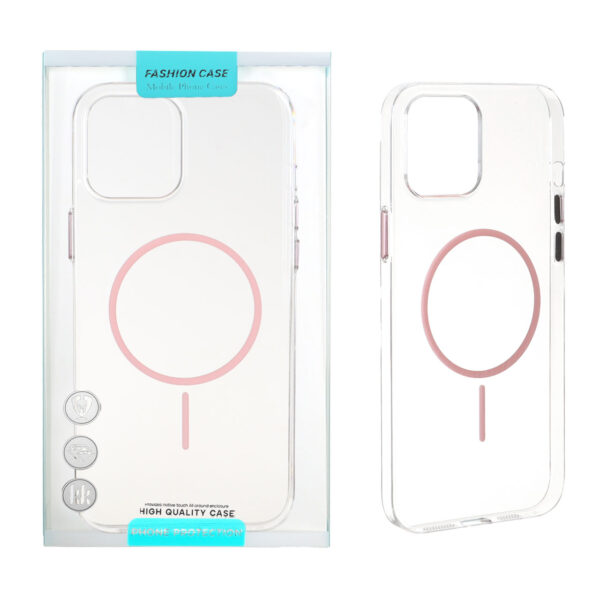 قاب شفاف MagSafe دکمه فلزی Apple iPhone 12 Pro Max – صورتی (پک دار)