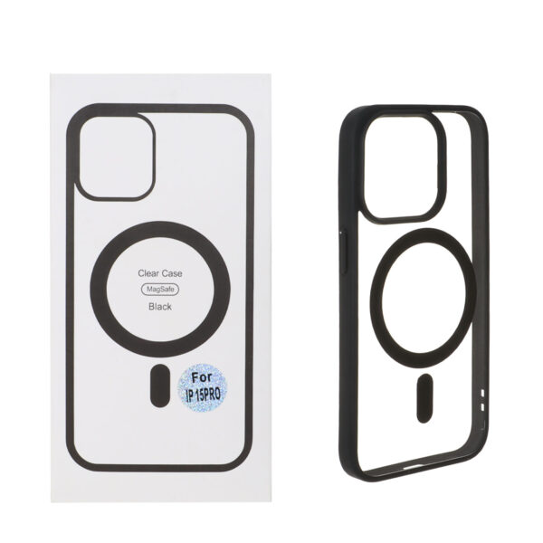 قاب شفاف Apple iPhone 15 Pro با قابلیت شارژ MagSafe – مشکی (پک دار)