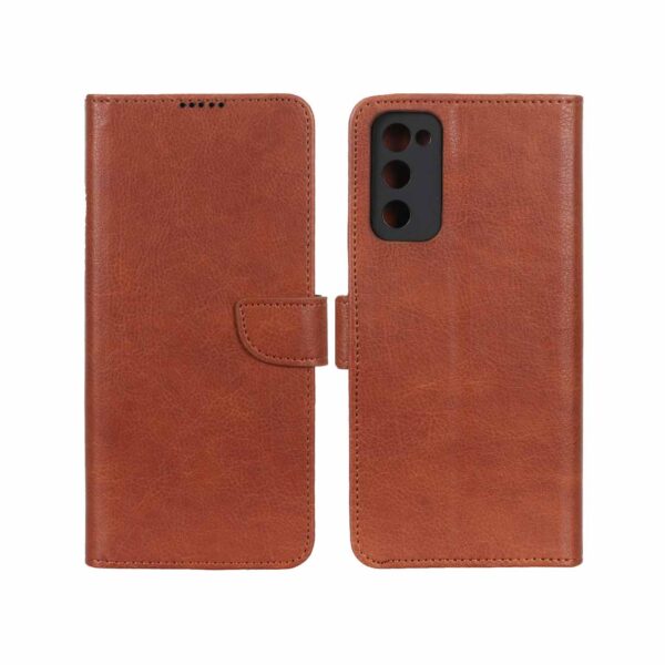 کیف چرمی موبایل مگنتی محافظ لنزدار Samsung Galaxy S20 FE – قهوه ای روشن