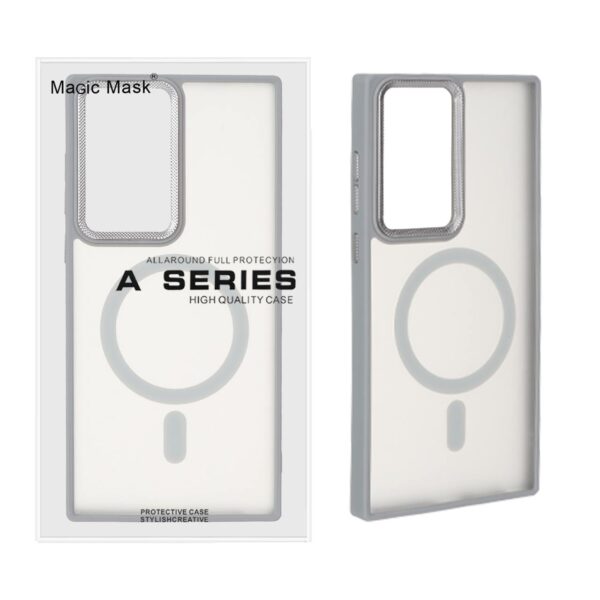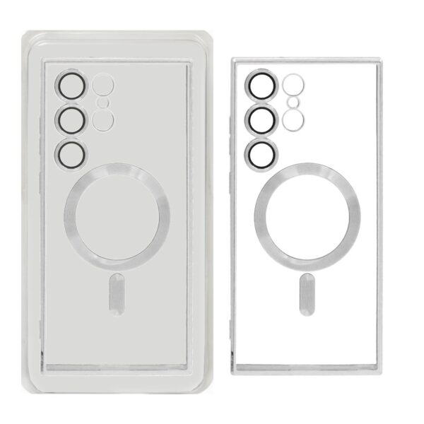 قاب اورجینال الکترواستاتیک Magsafe لنز گلس دار Samsung Galaxy S22 Ultra – نقره ای (پک دار)