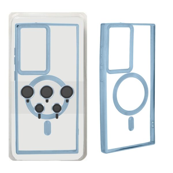 قاب اورجینال الکترواستاتیک MagSafe با ست محافظ لنز رینگی Samsung Galaxy S23 Ultra – آبی (پک دار)
