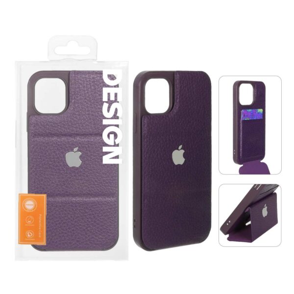 قاب چرمی جاکارتی استندشو لوگو برجسته Apple iPhone 11 – بنفش (پک دار)