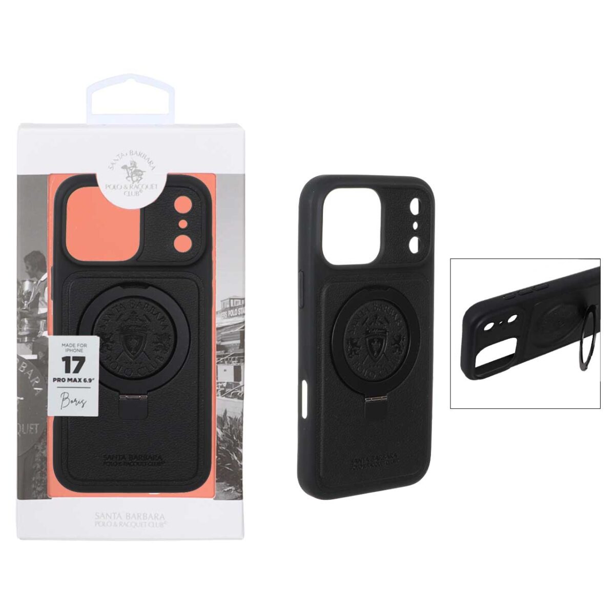 قاب اورجینال Polo Santa Barbara چرمی MagSafe استندشو Apple iPhone 17 Pro Max – مشکی (پک دار)