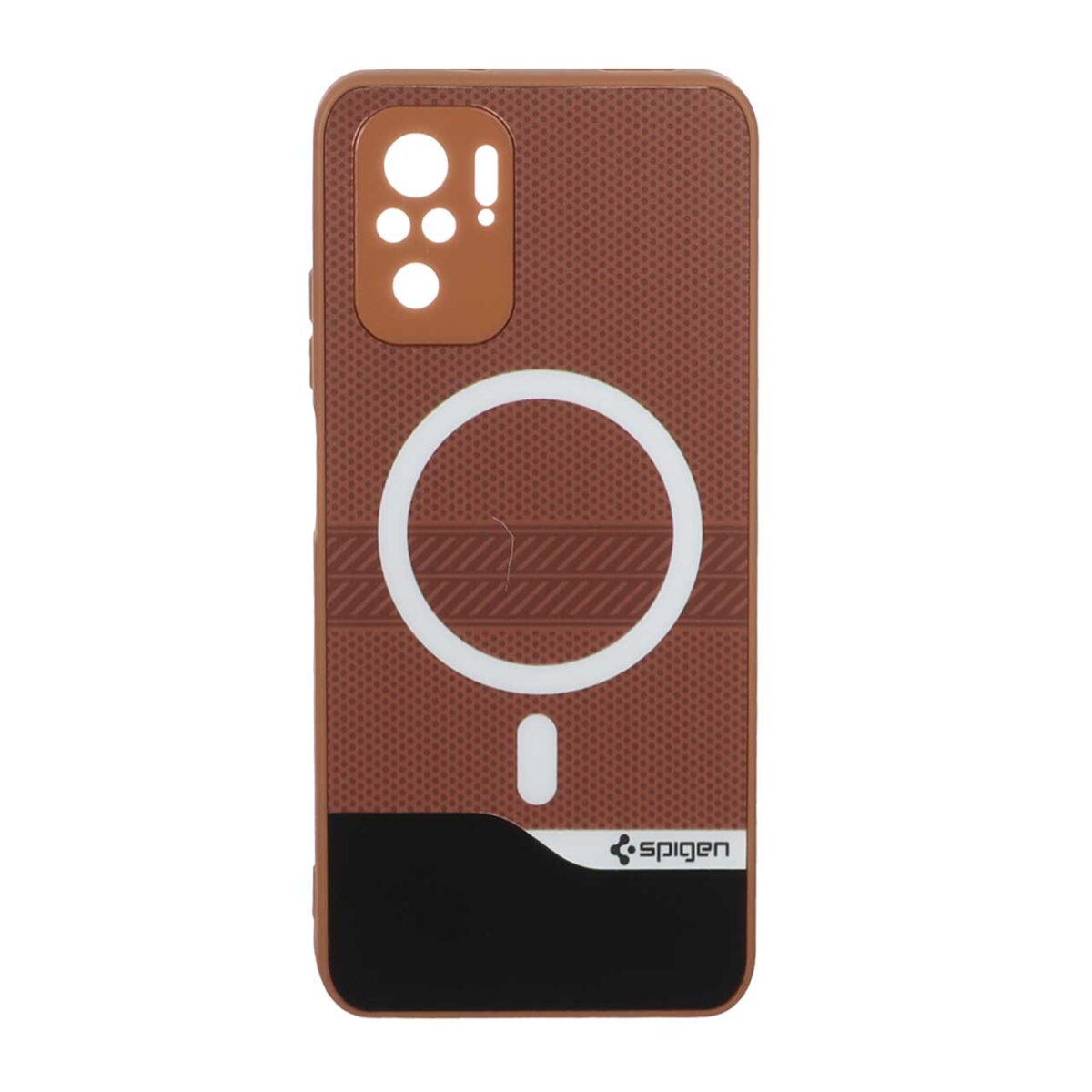 قاب Spigen دو تکه طرح مگ سیف محافظ لنزدار Xiaomi Redmi Note 10 4G / Redmi Note 10S / Poco M5S – قهوه ای