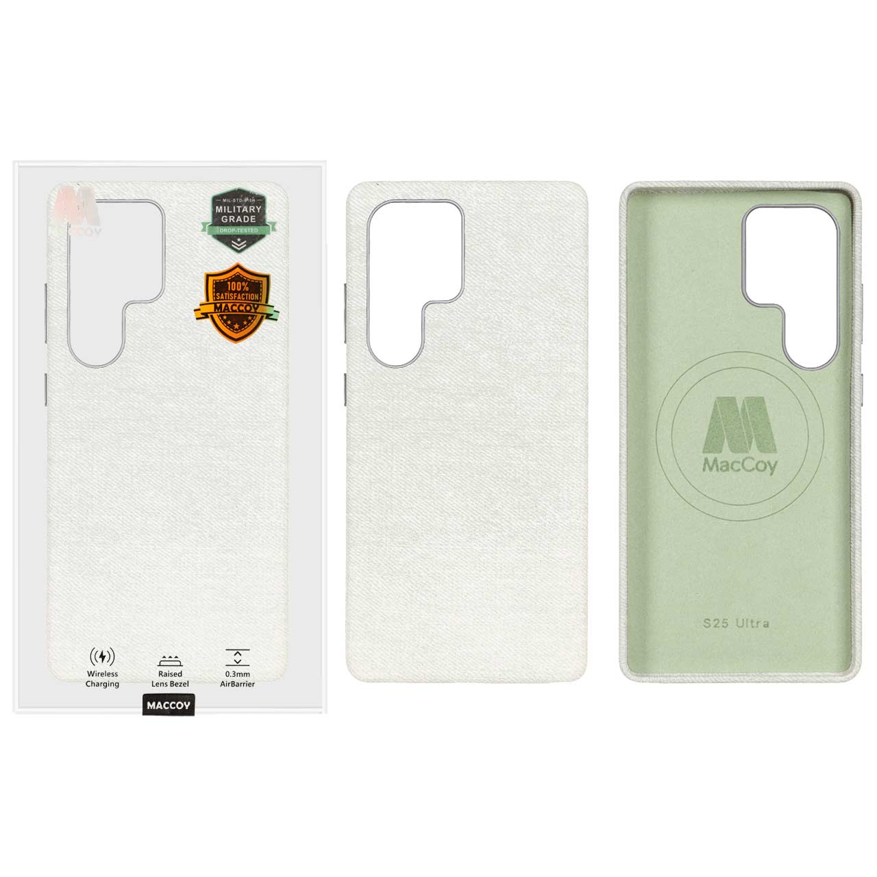 قاب اورجینال MacCoy پارچه ای لنز فلزی Magsafe Samsung Galaxy S25 Ultra – سبز روشن (پک دار)
