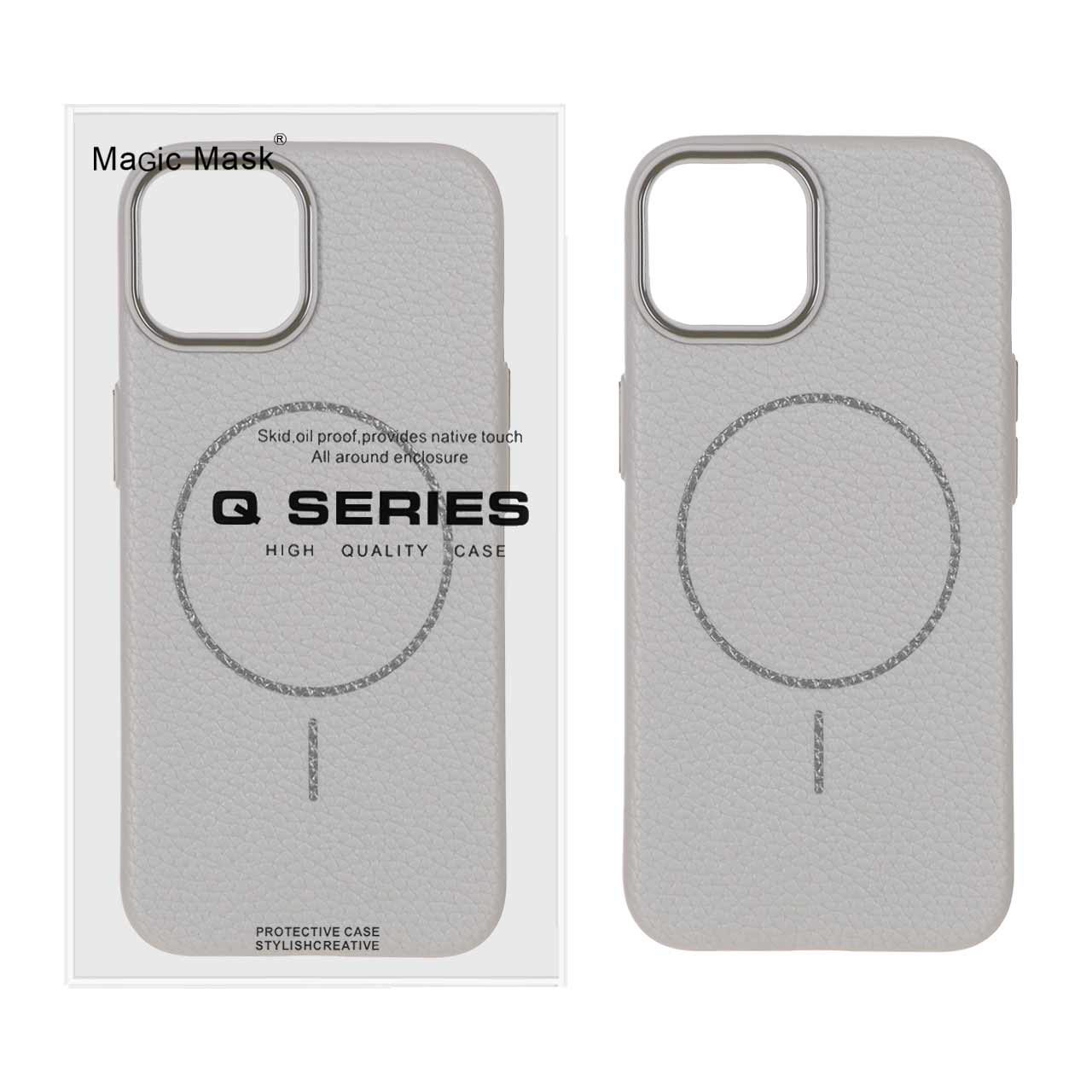 قاب اورجینال Magic Mask طرح چرم Magsafe مدل Apple iPhone 13 / iPhone 14 – طوسی (پک دار)