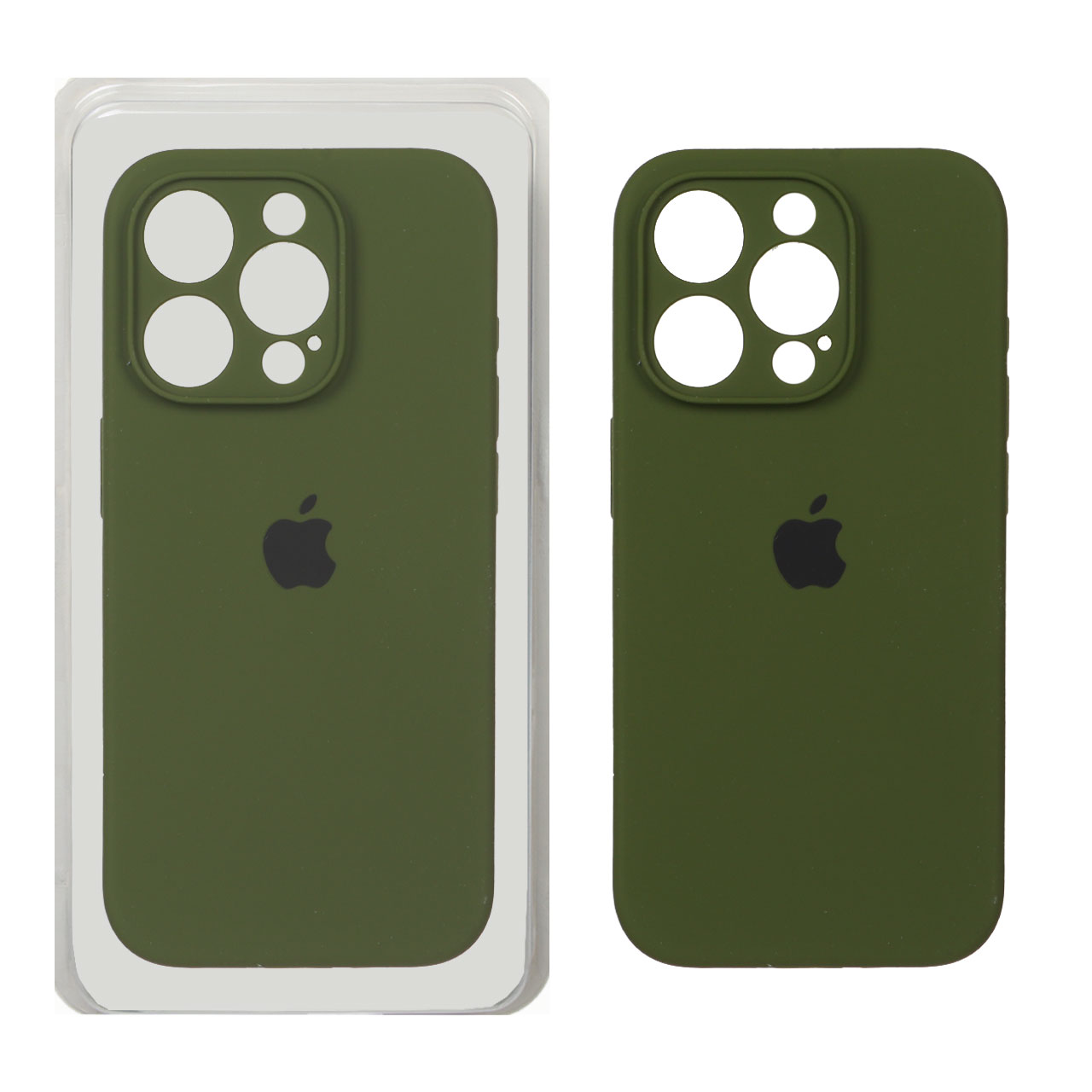 قاب سیلیکونی پاک کنی محافظ لنزدار اورجینال Apple iPhone 15 Pro – سبز زیتونی (پک اصلی)
