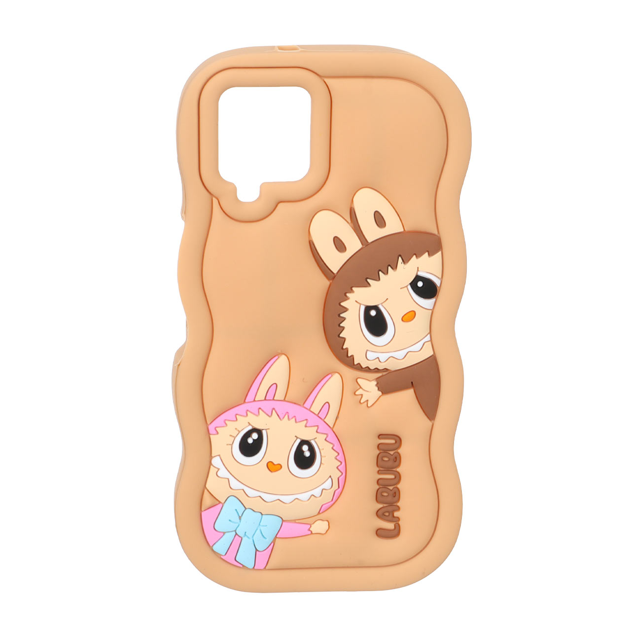 قاب سیلیکونی کنگره ای Labubu برجسته فانتزی Samsung Galaxy A12 / A42 / M42 – عسلی