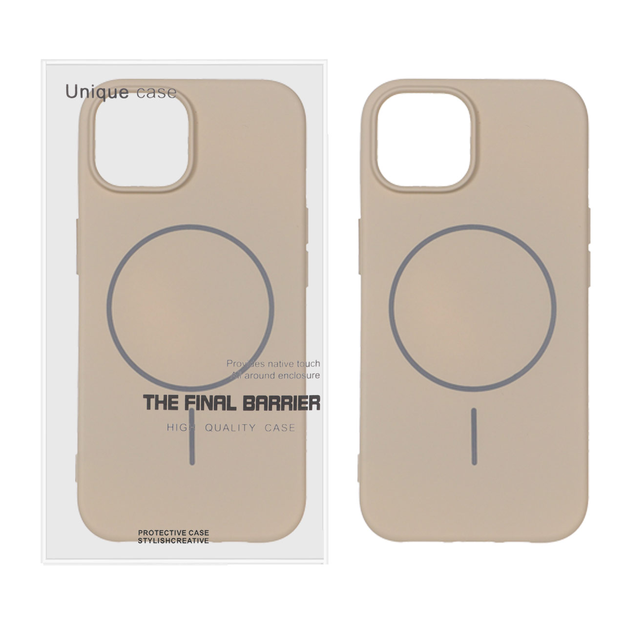 قاب سیلیکونی MagSafe محافظ لنزدار Apple iPhone 15 / iPhone 14 / iPhone 13 – صحرایی (پک دار)