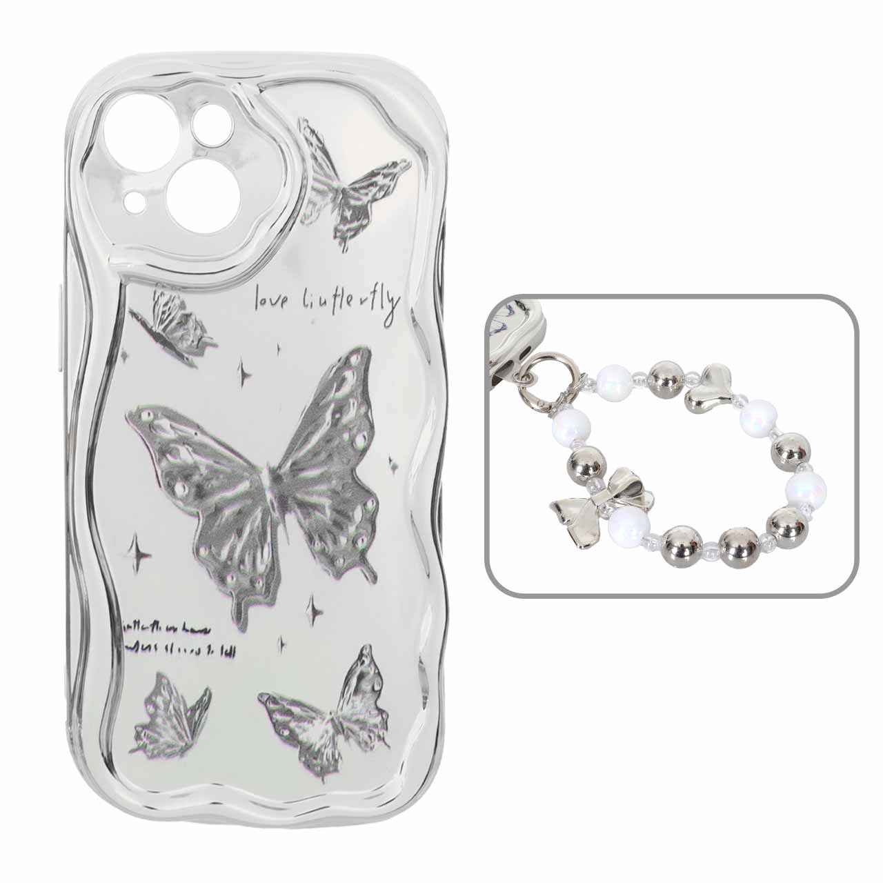 قاب کنگره ای آینه ای طرح دار با آویز مچی مرواریدی Apple iPhone 13 / iPhone 14 – کد 123