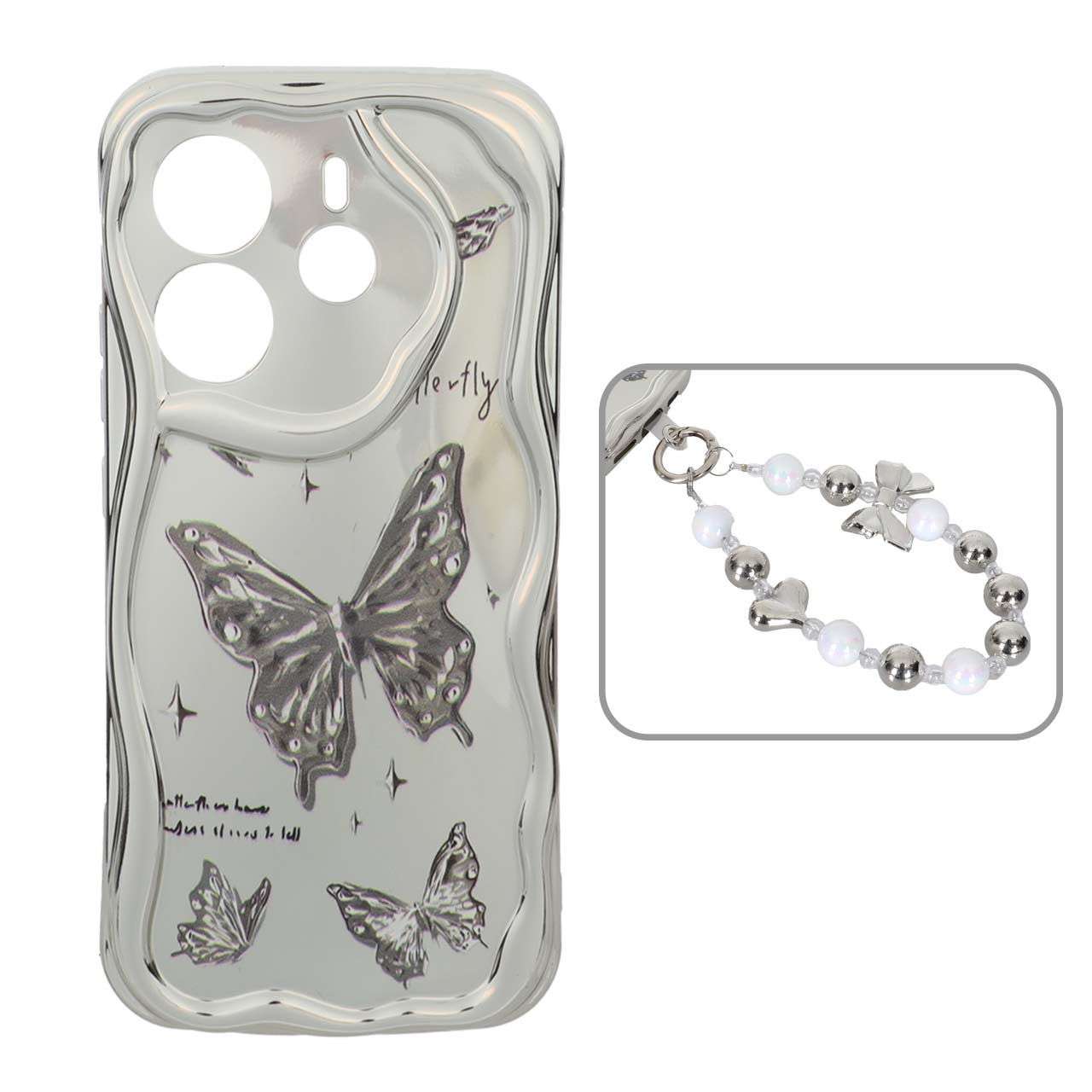 قاب کنگره ای آینه ای طرح دار با آویز مچی مرواریدی Xiaomi Redmi Note 14 4G – کد 71