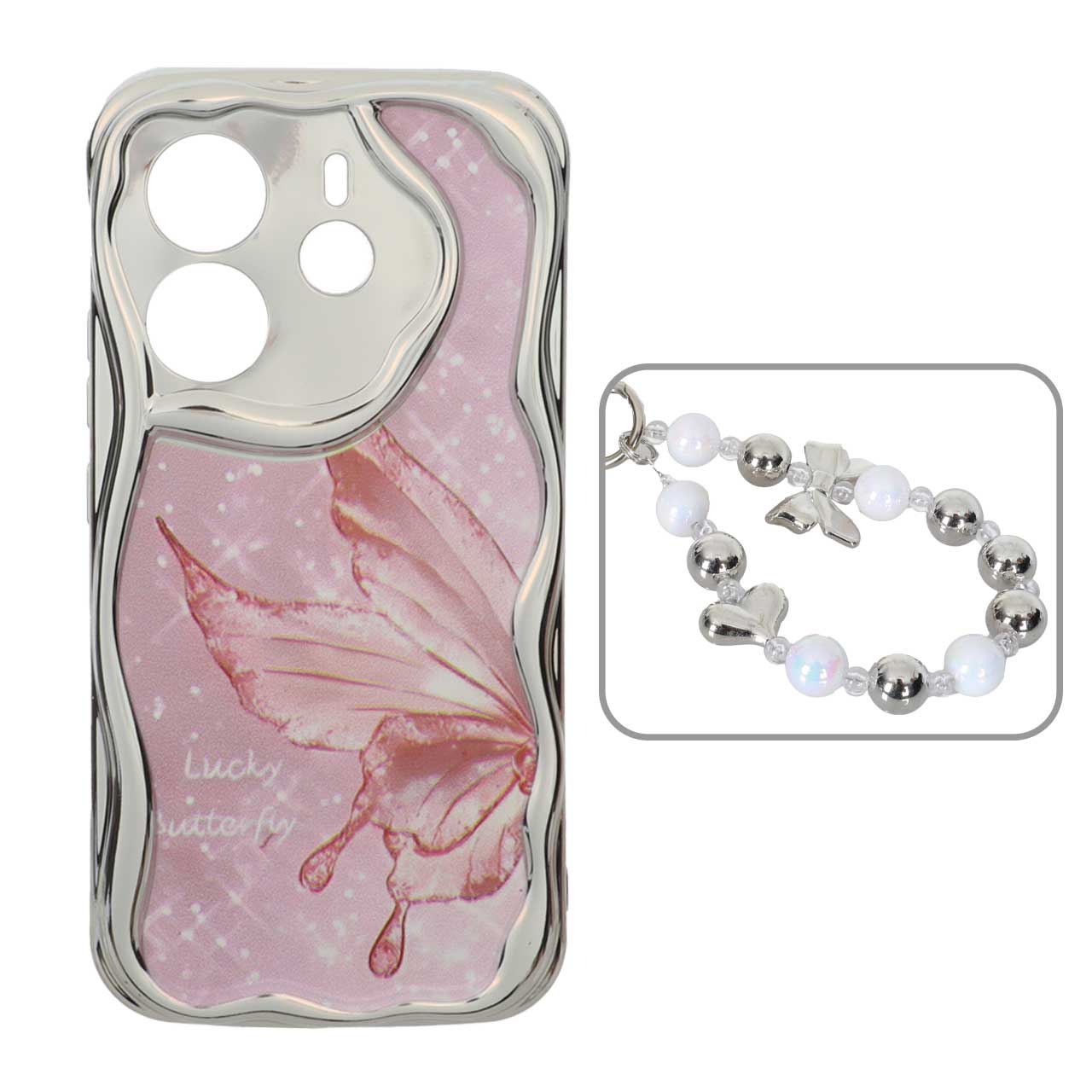 قاب کنگره ای آینه ای طرح دار با آویز مچی مرواریدی Xiaomi Redmi Note 14 4G – کد 74