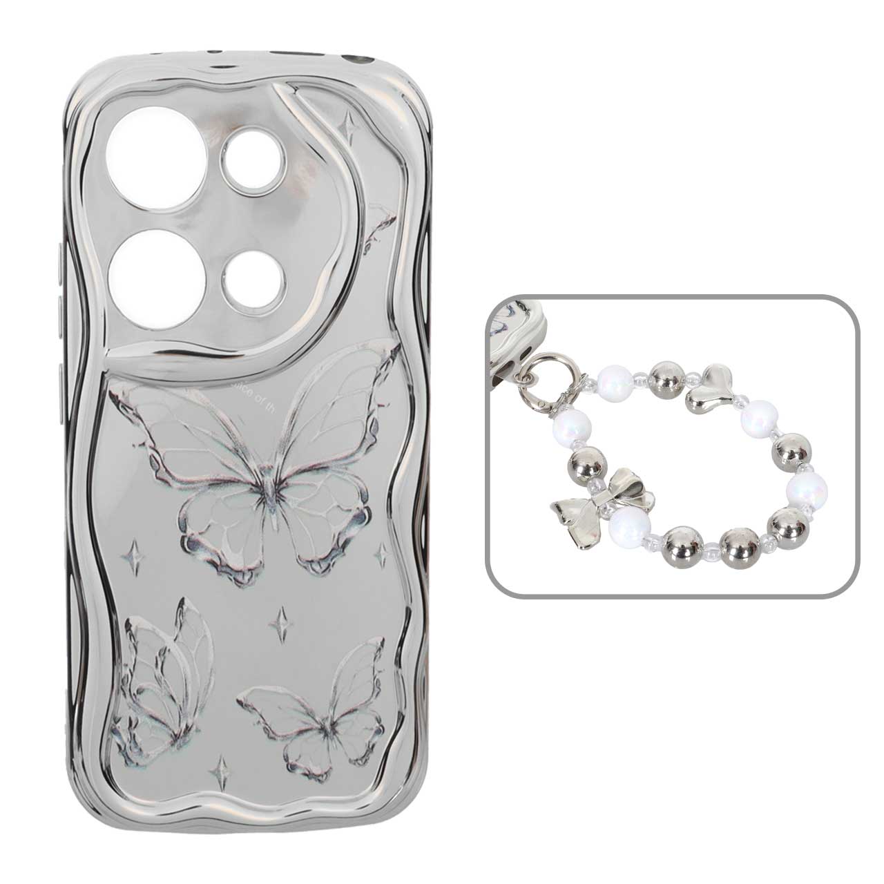 قاب کنگره ای آینه ای طرح دار با آویز مچی مرواریدی Xiaomi Redmi Note 14S / Note 13 Pro 4G / Poco M6 Pro 4G – کد 103