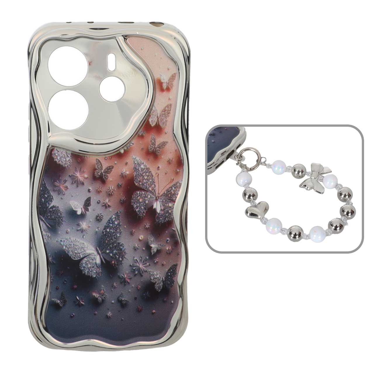 قاب کنگره ای آینه ای طرح دار با آویز مچی مرواریدی Xiaomi Redmi Note 14 4G – کد 77