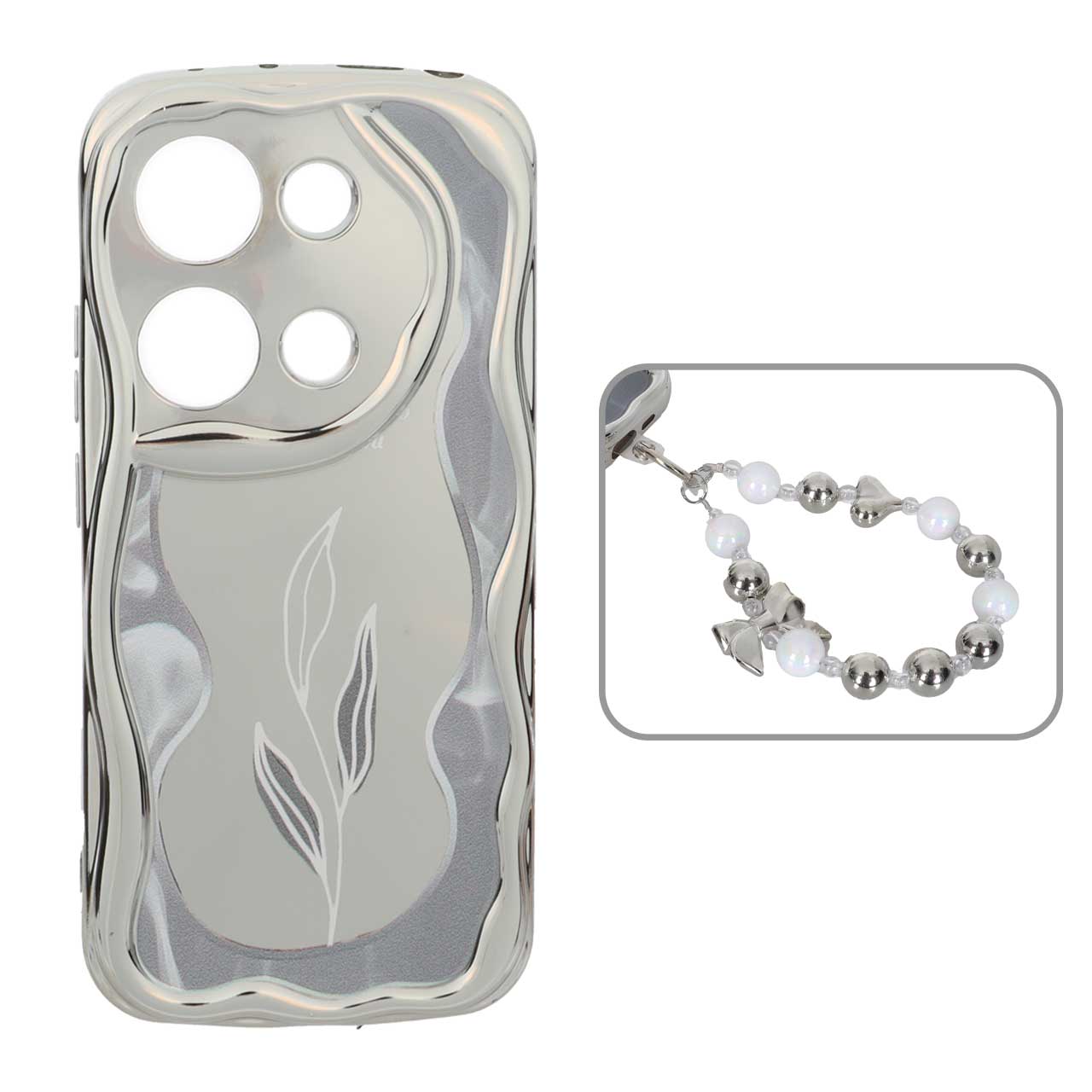 قاب کنگره ای آینه ای طرح دار با آویز مچی مرواریدی Xiaomi Redmi Note 14S / Note 13 Pro 4G / Poco M6 Pro 4G – کد 104