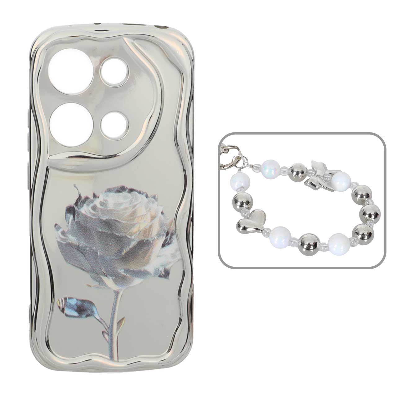 قاب کنگره ای آینه ای طرح دار با آویز مچی مرواریدی Xiaomi Redmi Note 14S / Note 13 Pro 4G / Poco M6 Pro 4G – کد 105