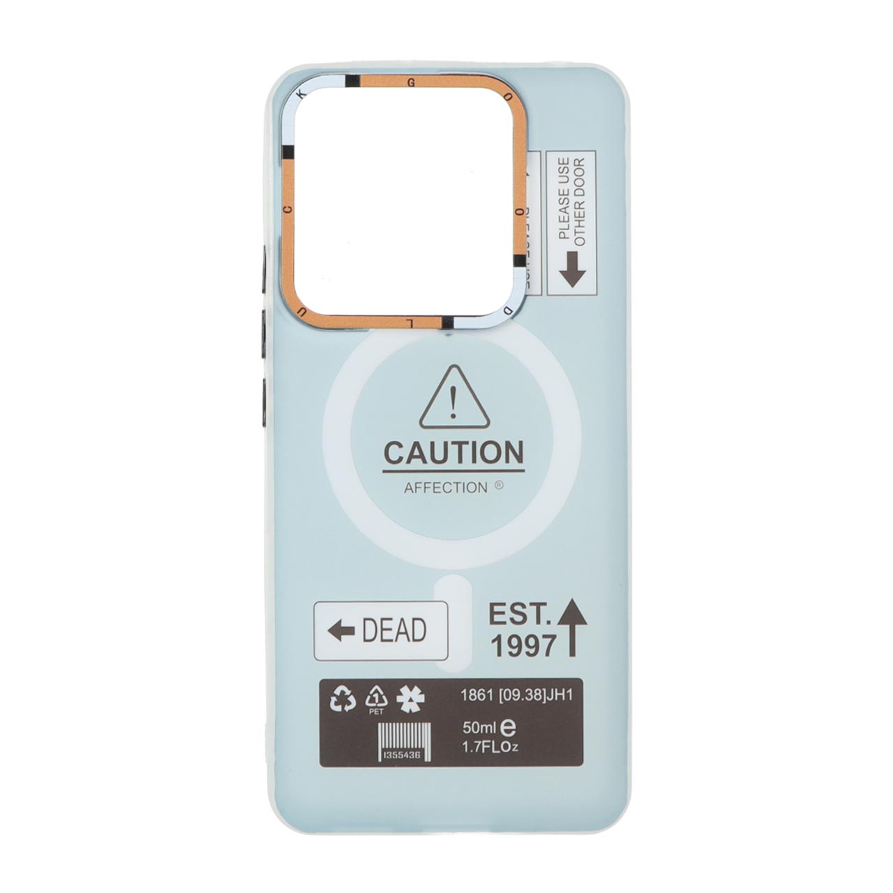 قاب Caution دور مات طرح مگ سیف Xiaomi Redmi Note 14 4G – آبی