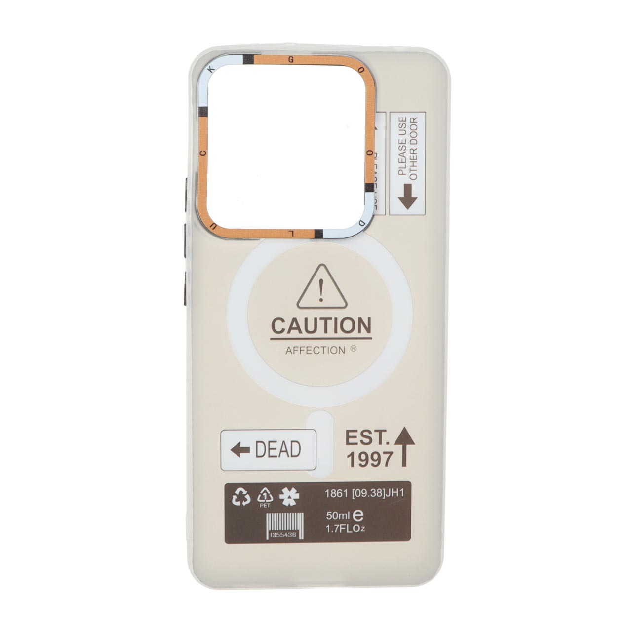 قاب Caution دور مات طرح مگ سیف Xiaomi Redmi Note 14 4G – طوسی
