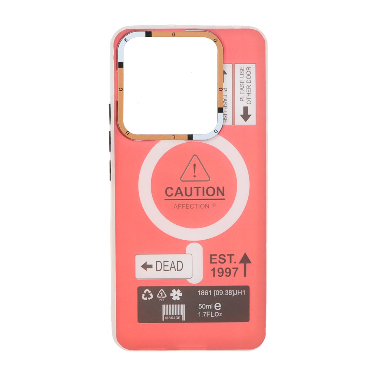 قاب Caution دور مات طرح مگ سیف Xiaomi Redmi Note 14 4G – قرمز