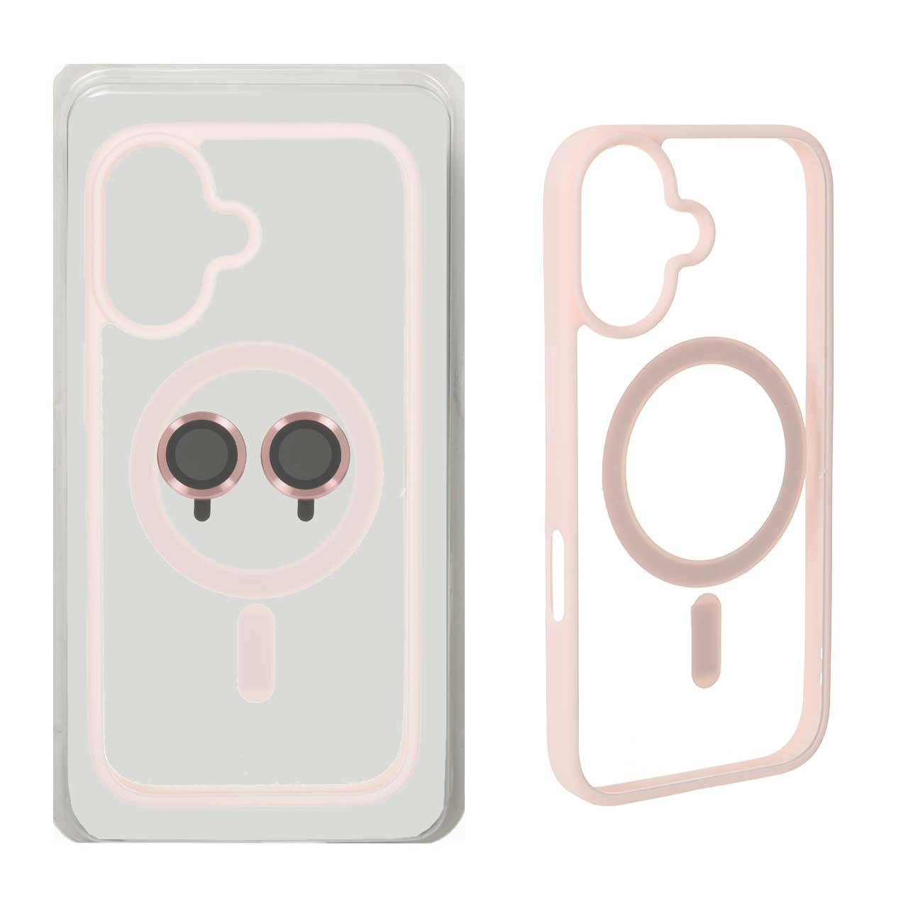 قاب Magnetic شفاف MagSafe با ست محافظ لنز رینگی Apple iPhone 16 – صورتی روشن (پک دار)