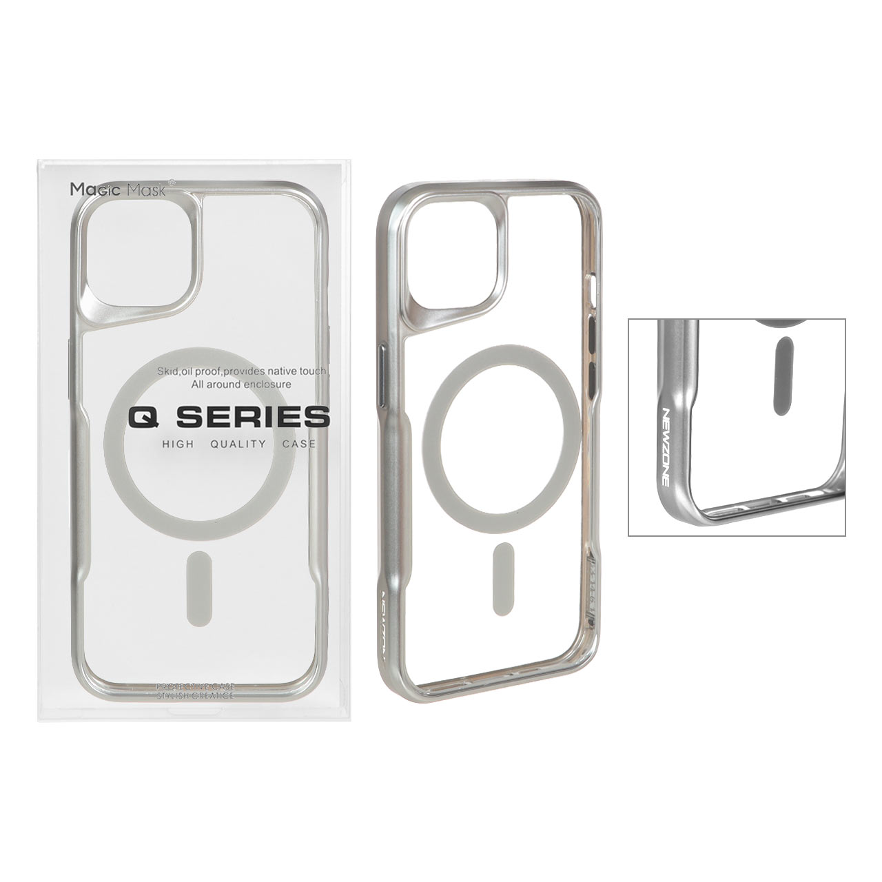 قاب اورجینال Newzone شفاف Magsafe مدل Apple iPhone 13 / iPhone 14 – نقره ای (پک دار)