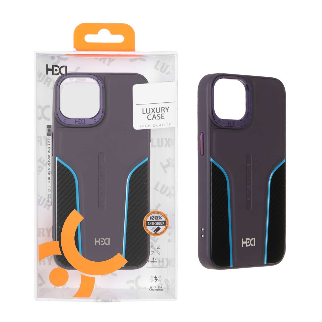 قاب اورجینال HDD طرح کربن محافظ لنز فلزی Apple iPhone 13 / iPhone 14 – بنفش (پک دار)