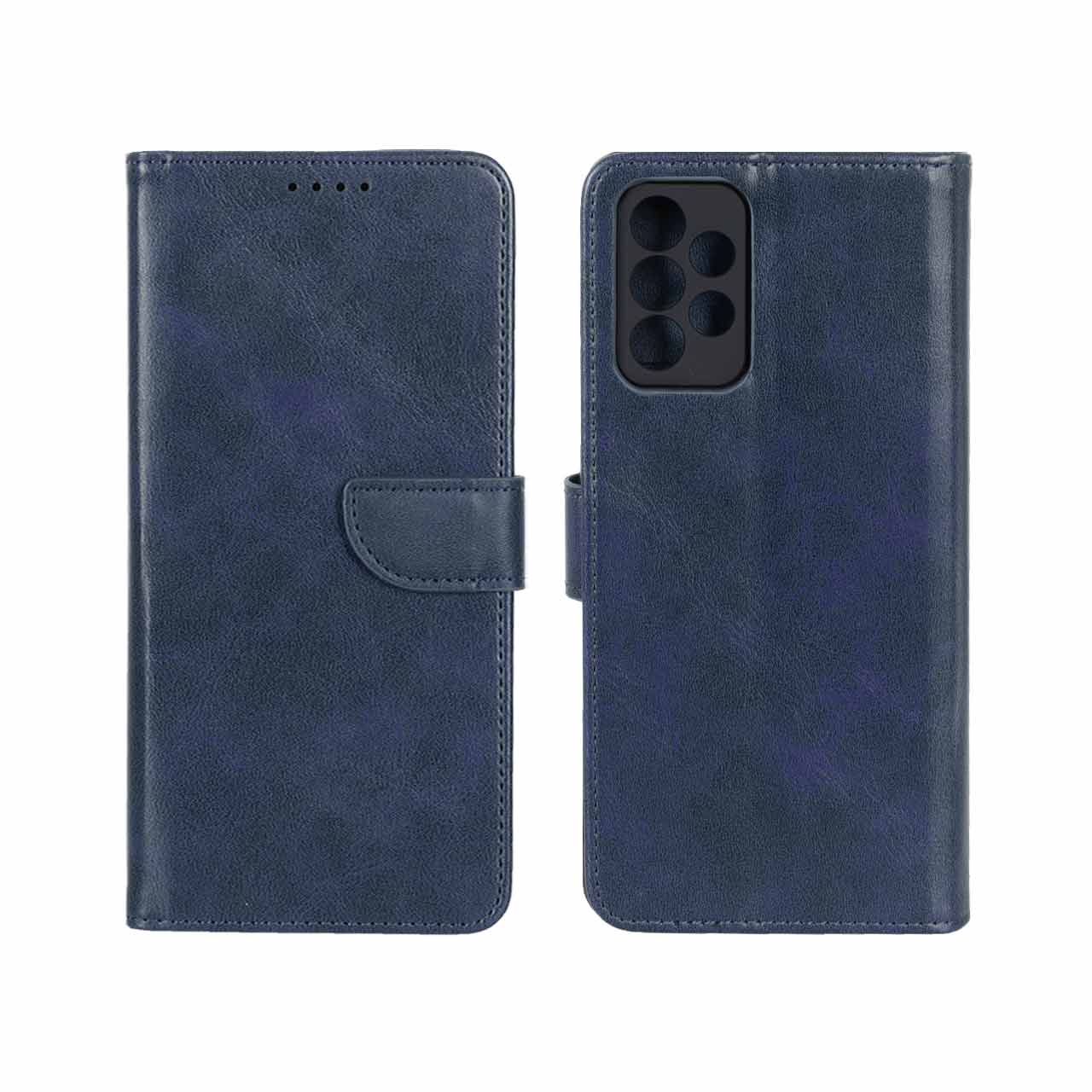 کیف چرمی موبایل مگنتی محافظ لنزدار Samsung Galaxy A72 – سرمه ای