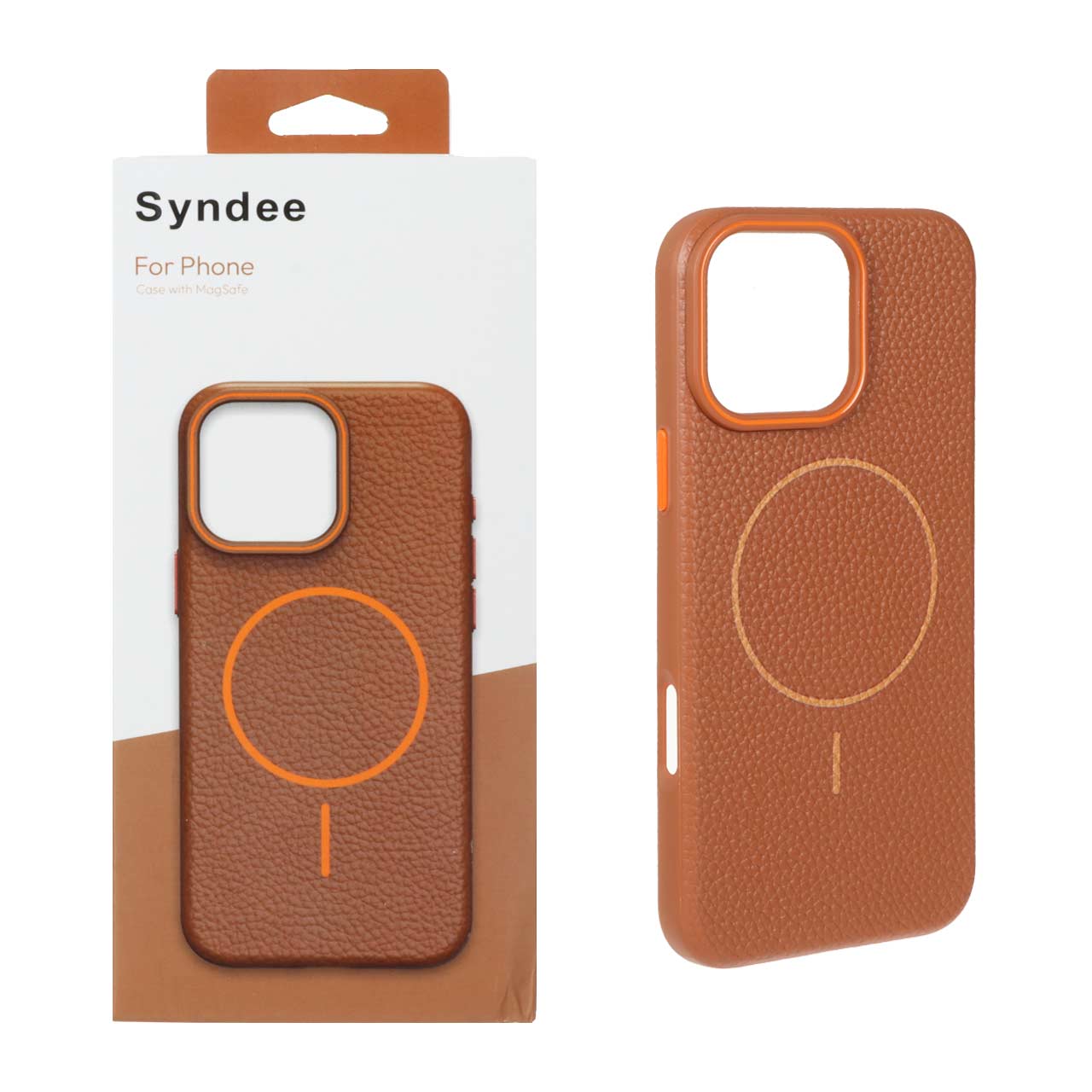 قاب Syndee طرح چرم MagSafe مدل Apple iPhone 16 Pro Max – صحرایی (پک دار)