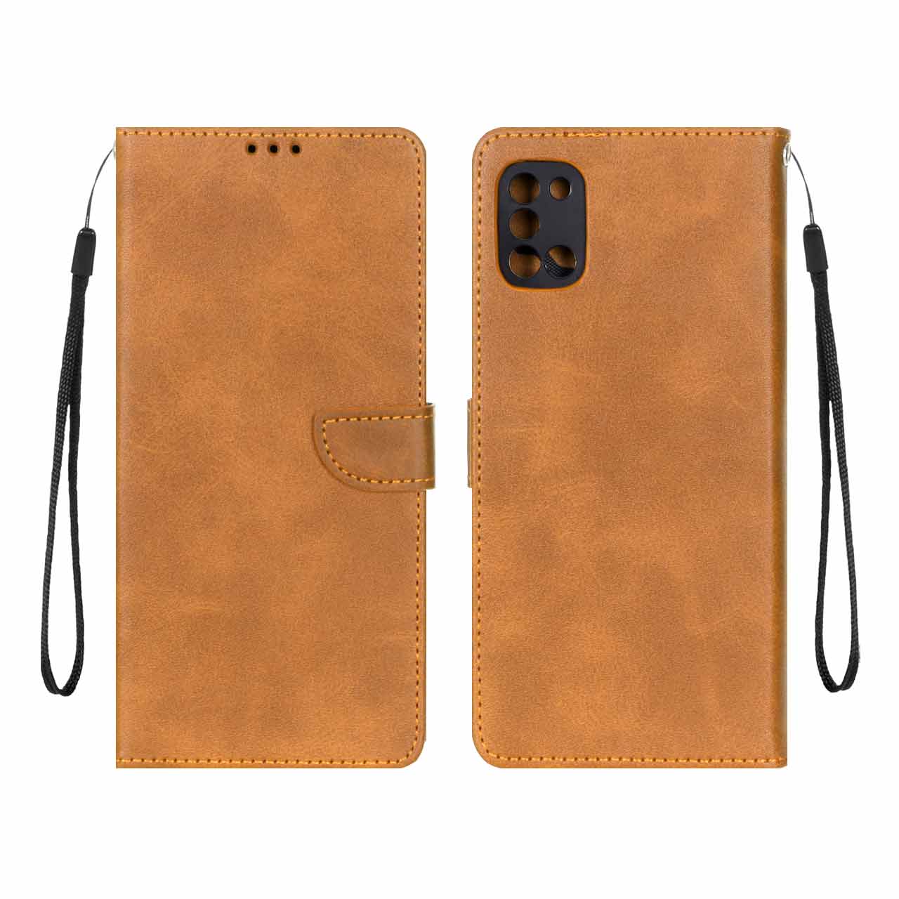 کیف چرمی موبایل مگنتی محافظ لنزدار Samsung Galaxy A31 – عسلی