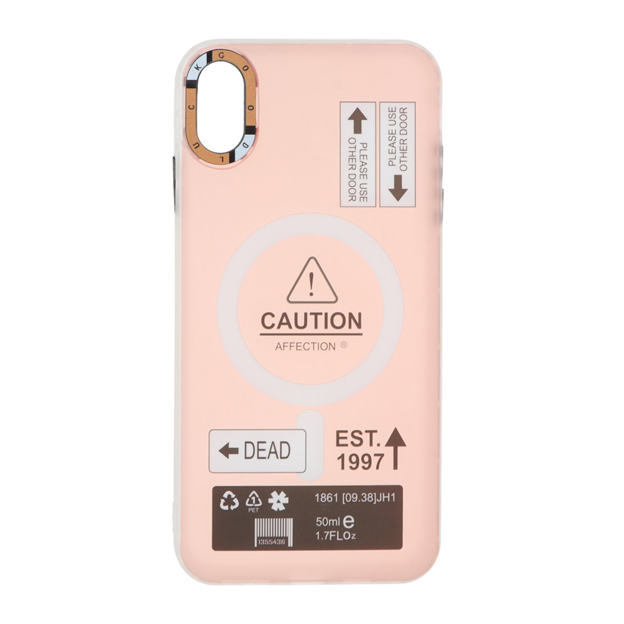 قاب Caution دور مات طرح مگ سیف Apple iPhone X Max / iPhone XS Max – صورتی