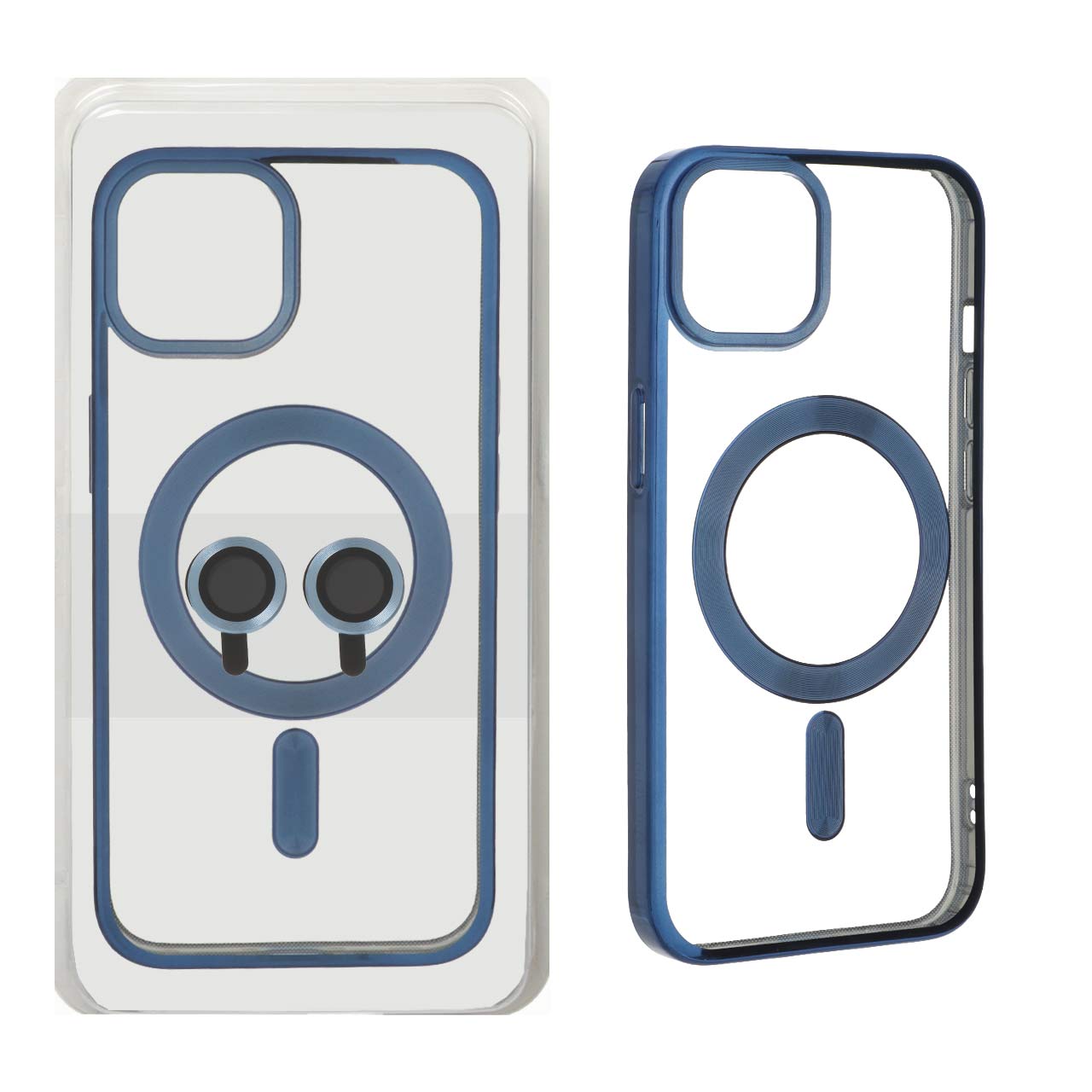 قاب اورجینال الکترواستاتیک MagSafe با ست محافظ لنز رینگی Apple iPhone 13 / iPhone 14 – آبی (پک دار)