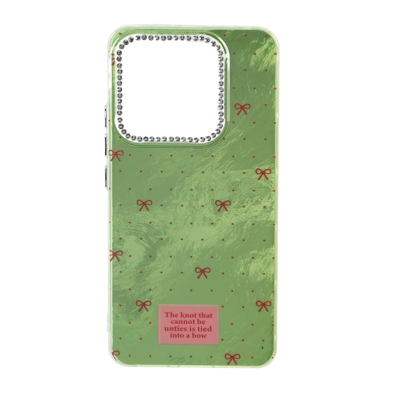 قاب اطلسی طرح پاپیون لنز نگین دار Xiaomi Redmi Note 14 4G – سبز