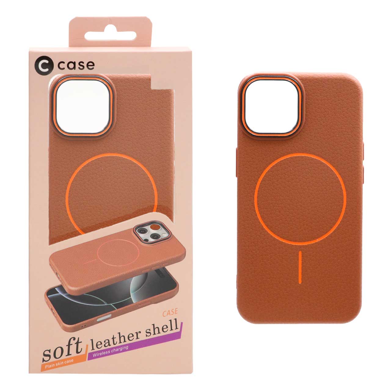 قاب اورجینال C Case طرح چرم MagSafe مدل Apple iPhone 13 / iPhone 14 – قهوه ای (پک دار)