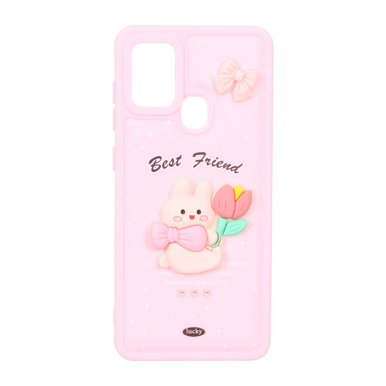 قاب پافر ساده Lucky عروسک خمیری Samsung Galaxy A21s – صورتی